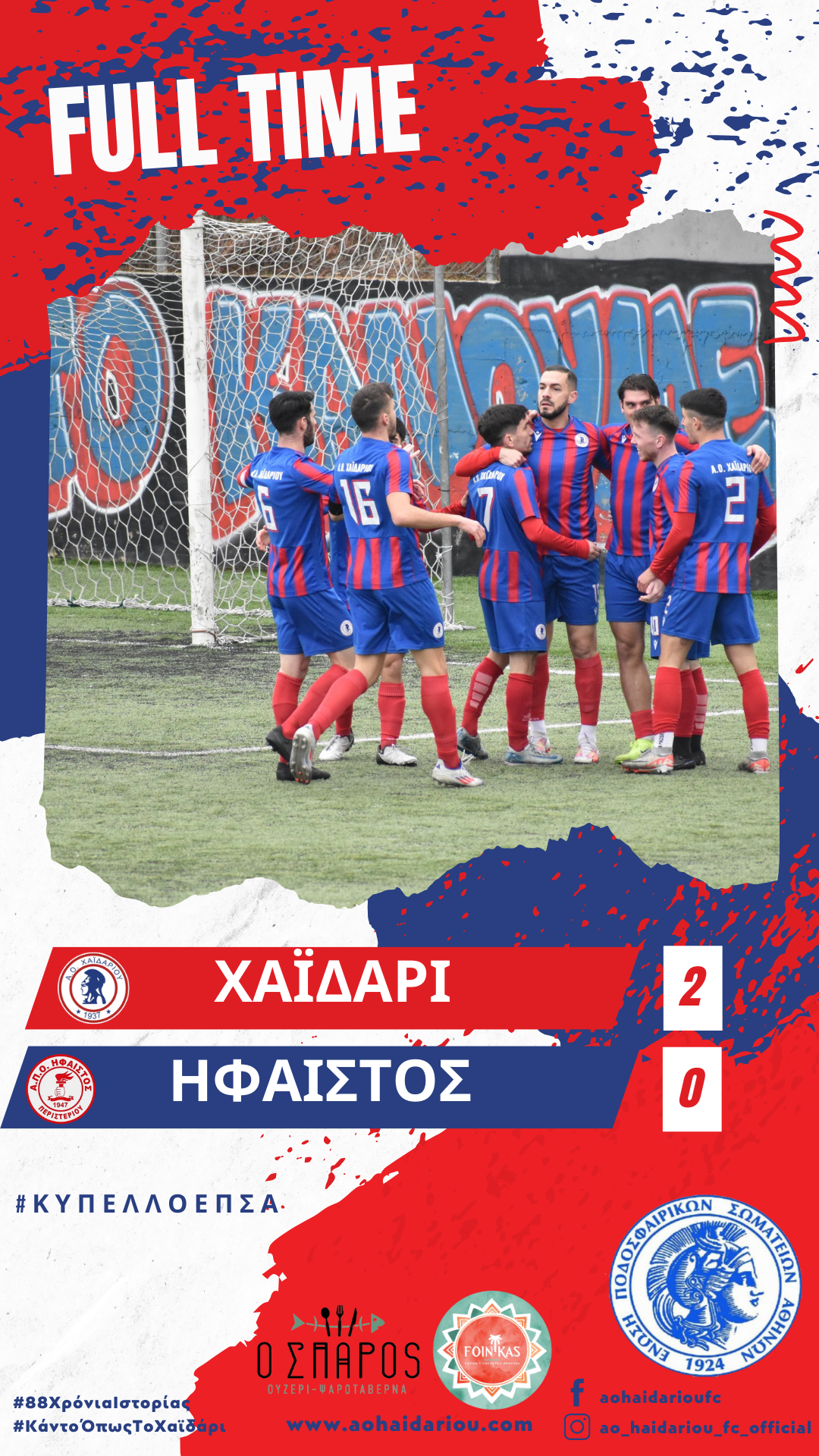 Νίκη με 2 – 0 απέναντι στον Ήφαιστο και πρόκριση στα ημιτελικά του Κυπέλλου