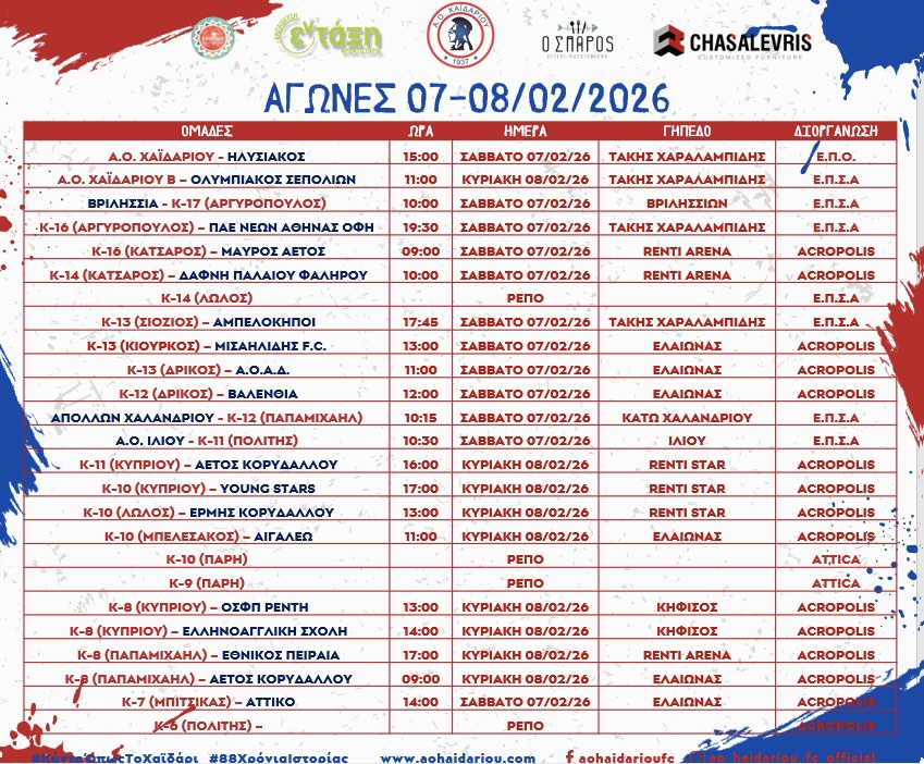 7 Φεβρουαρίου 2026 Κατηγορίες Νέα Ακαδημιών Ετικέτες Κοινοποίηση Σχετικές αναρτήσεις30 Μαρτίου 2026Αποτελέσματα Ακαδημίας 28 – 29 Μαρτίου 2026Δείτε περισσότερα27 Μαρτίου 2026Πρόγραμμα Ακαδημίας 28 – 29 Μαρτίου 2026Δείτε περισσότερα24 Μαρτίου 2026Αποτελέσματα Ακαδημίας 21 – 22 Μαρτίου 2026Δείτε περισσότερα19 Μαρτίου 2026Πρόγραμμα Ακαδημίας 21 – 22 Μαρτίου 2026Δείτε περισσότερα16 Μαρτίου 2026Αποτελέσματα Ακαδημίας 14 – 15 Μαρτίου 2026Δείτε περισσότερα