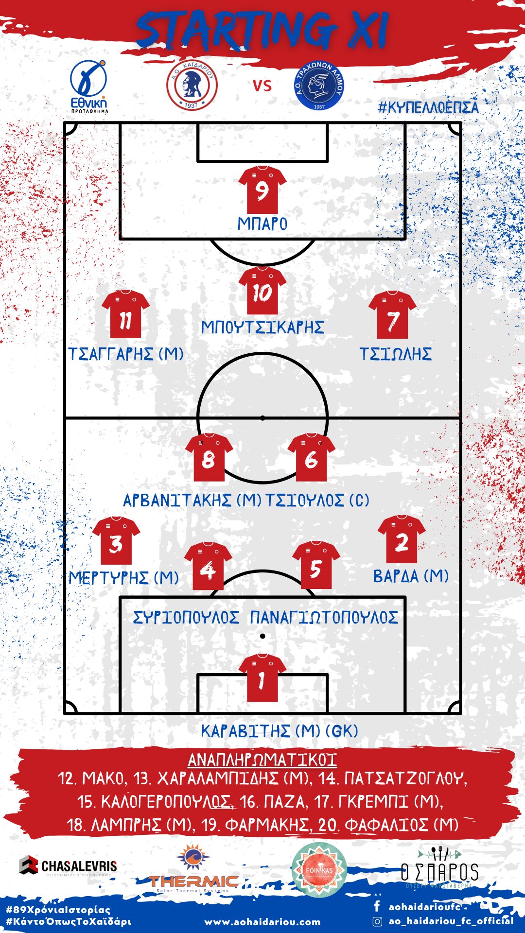Η ομάδα μας για το εντός έδρας ματς, στα πλαίσια της ημιτελικής φάσης του Κυπέλλου Ε.Π.Σ.Α. της σεζόν 2025 – 2026, απέναντι στoυς Τράχωνες, θα παραταχθεί με την παρακάτω σύνθεση.