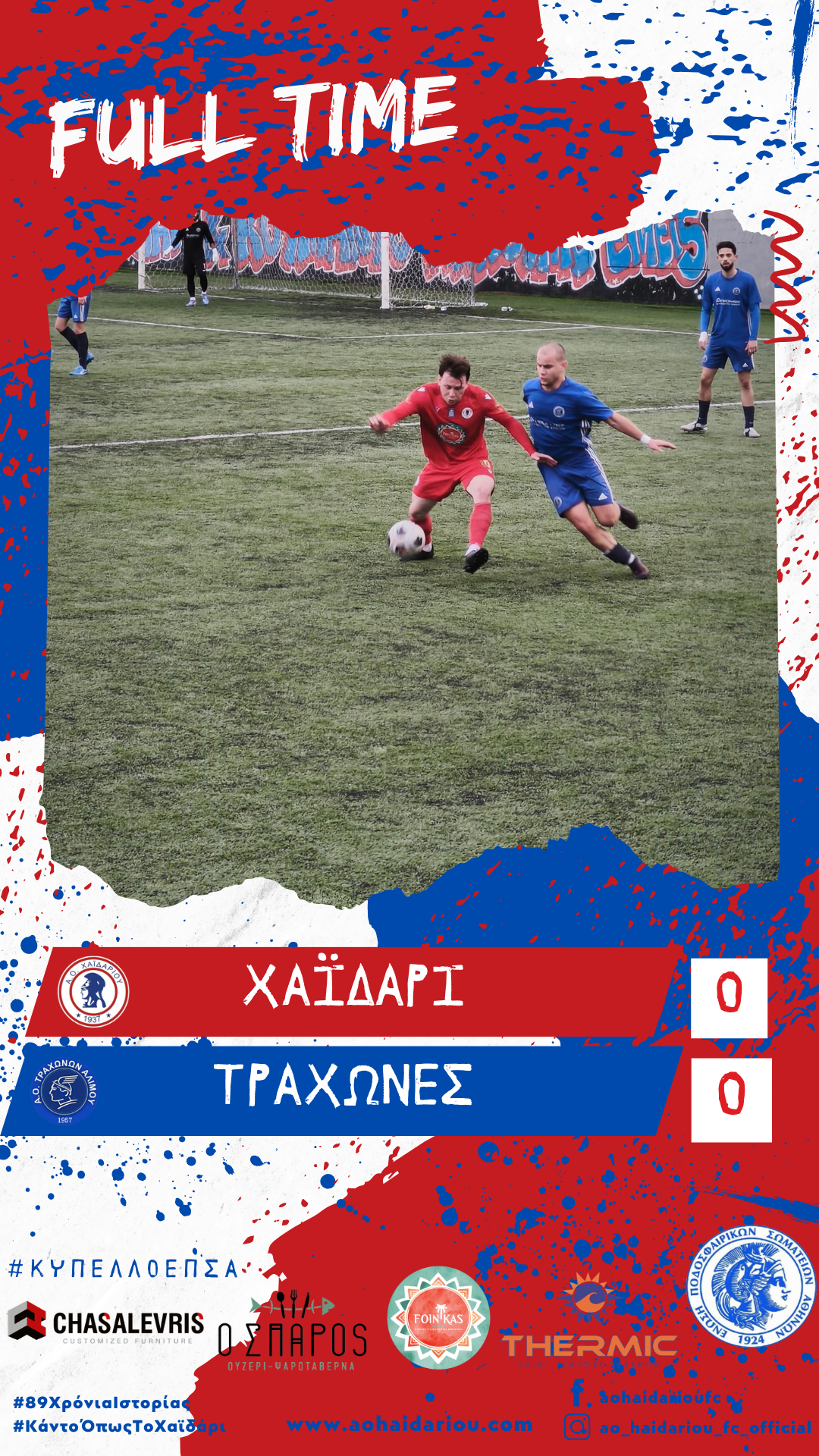 Χαϊδάρι: Καραβίτης, Βαρδακώστας (46′ Γκρέμπι), Μερτύρης, Συριόπουλος, Παναγιωτόπουλος, Τσιούλος, Τσιώλης (55′ Πατσατζόγλου (80′ λ.τ. Φαρμάκης)), Αρβανιτάκης, Μπάρο (55′ Πάζα), Μπουτσικάρης (67′ Μάκο), Τσαγγάρης