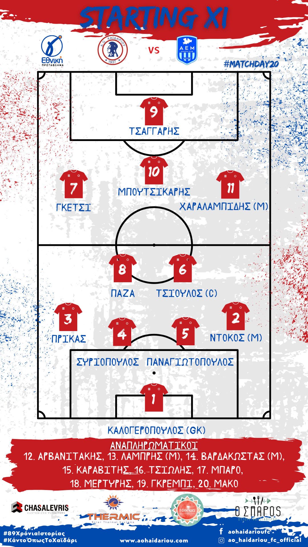 Η ομάδα μας για το εντός έδρας ματς, στα πλαίσια της 20ης αγωνιστικής της σεζόν 2025 – 2026, απέναντι στη Μύκονο, θα παραταχθεί με την παρακάτω σύνθεση.