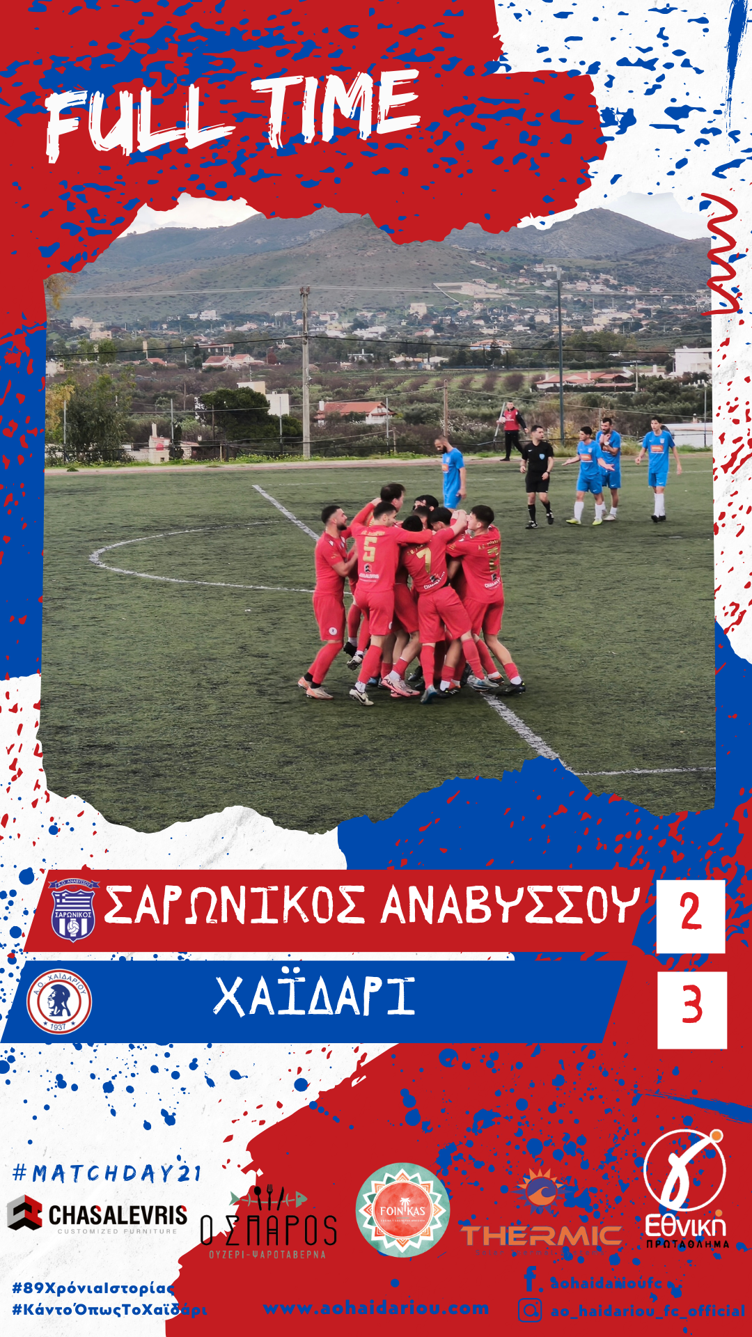 Αποφασισμένη να παλέψει μέχρι τέλους για την παραμονή της στην κατηγορία, η ομάδα μας κατάφερε να φύγει με το πολύτιμο τρίποντο από την Ανάβυσσο, επικρατώντας με 2 – 3 επί του Σαρωνικού, σε έναν δύσκολο αγωνιστικό χώρο, κάτω από δυνατή βροχή στη μεγαλύτερη διάρκεια του αγώνα και με πολλές καθυστερήσεις.