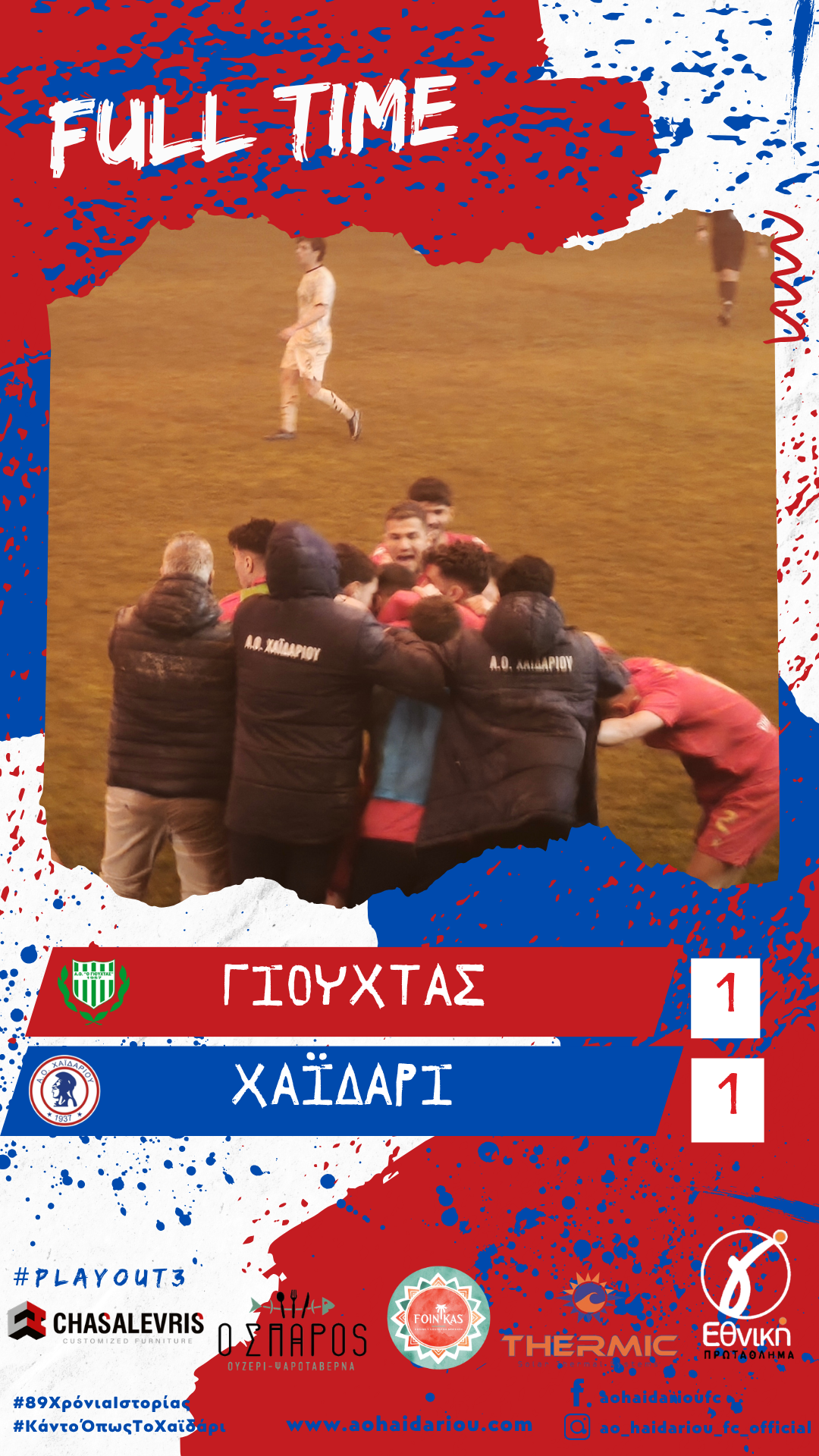 Χαϊδάρι: Καλογερόπουλος, Ντόκος, Πρίκας, Συριόπουλος, Παναγιωτόπουλος, Πάζα, Μπουτσικάρης, Χαραλαμπίδης, Γκέτσι (86′ Πατσατζόγλου), Μερτύρης (54′ Μάκο), Γκρέμπι